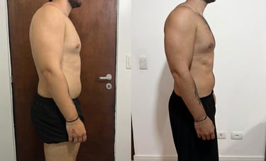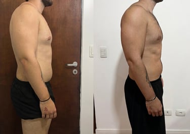 Viviendo en Nueva Zelanda y con traslados constantes por trabajo, Juan necesitaba un sistema que no se rompiera ante el primer cambio de ciudad. Durante un año de compromiso, adaptamos su plan a cada nueva realidad. ¿EI resultado? Una transformación física contundente en 9 meses, ganando masa muscular y dominando la técnica, con un hábito alimenticio sostenible que hoy es parte de su estilo de vida.